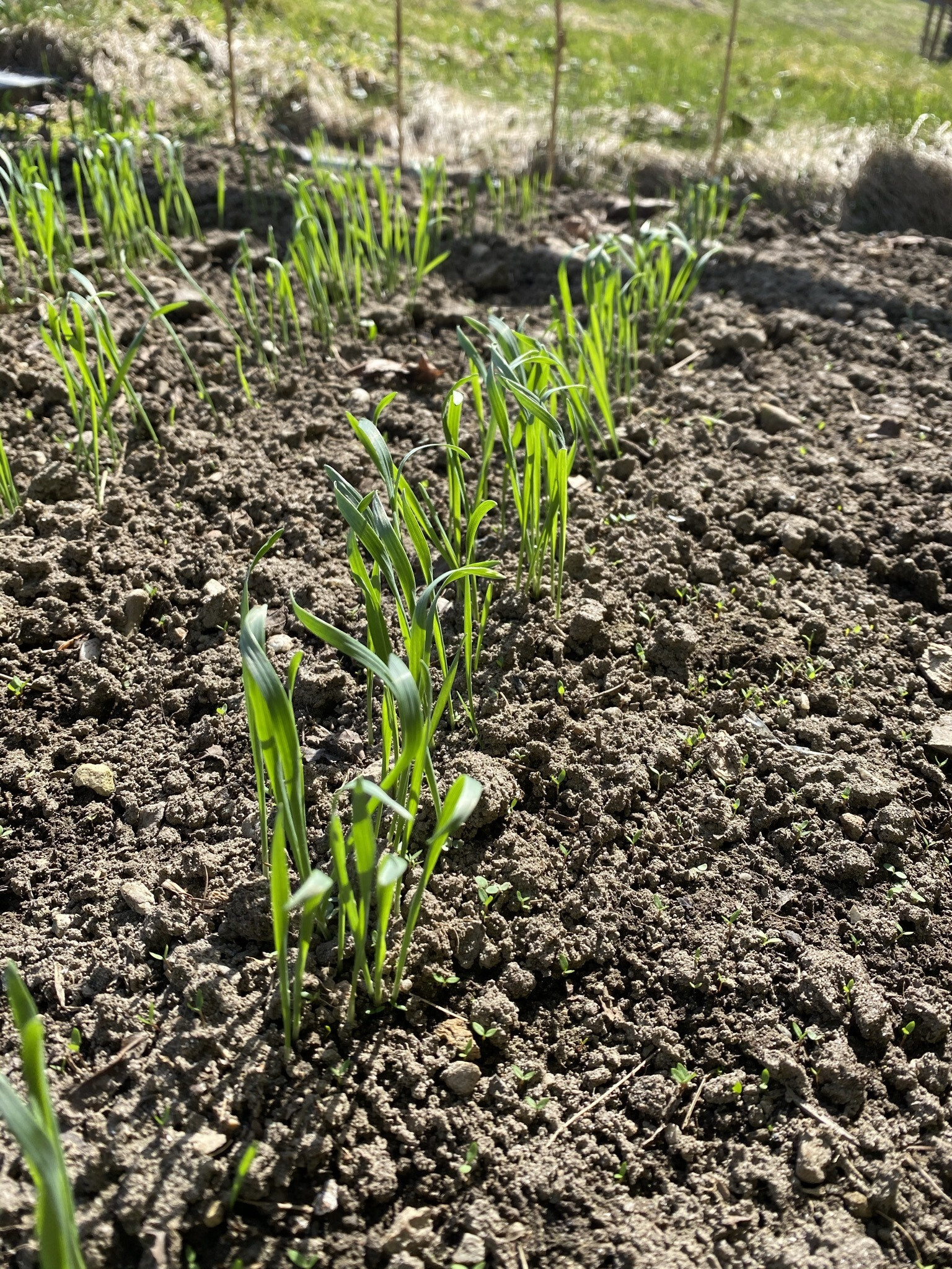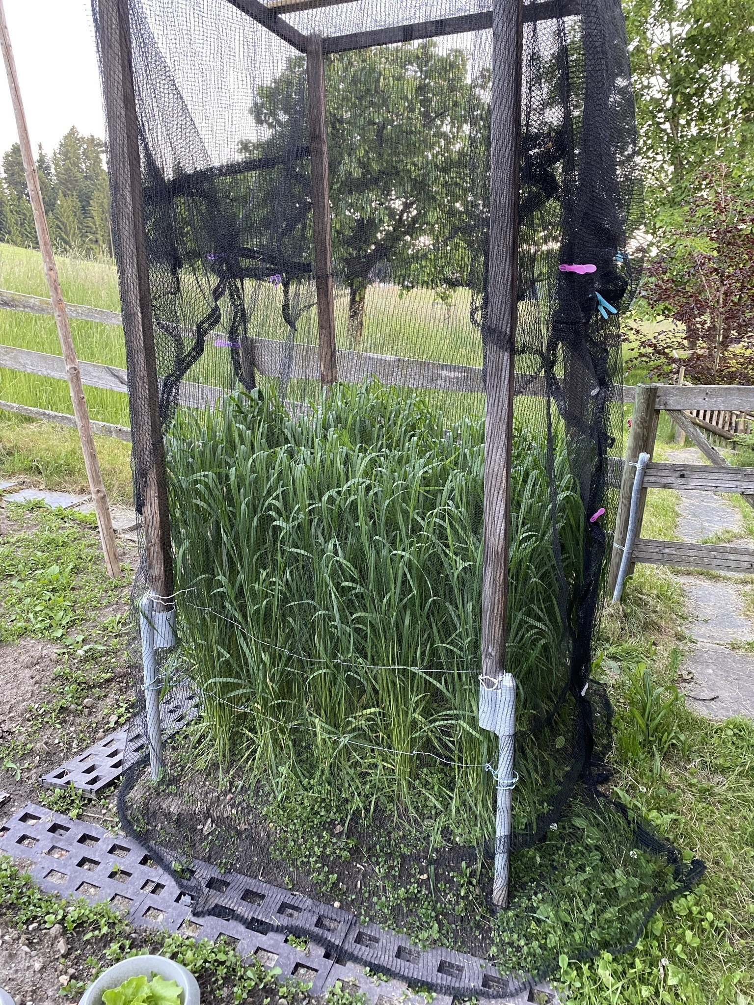 Sobald der Weizen wächst, wird ein Netz zur Stütze montiert
