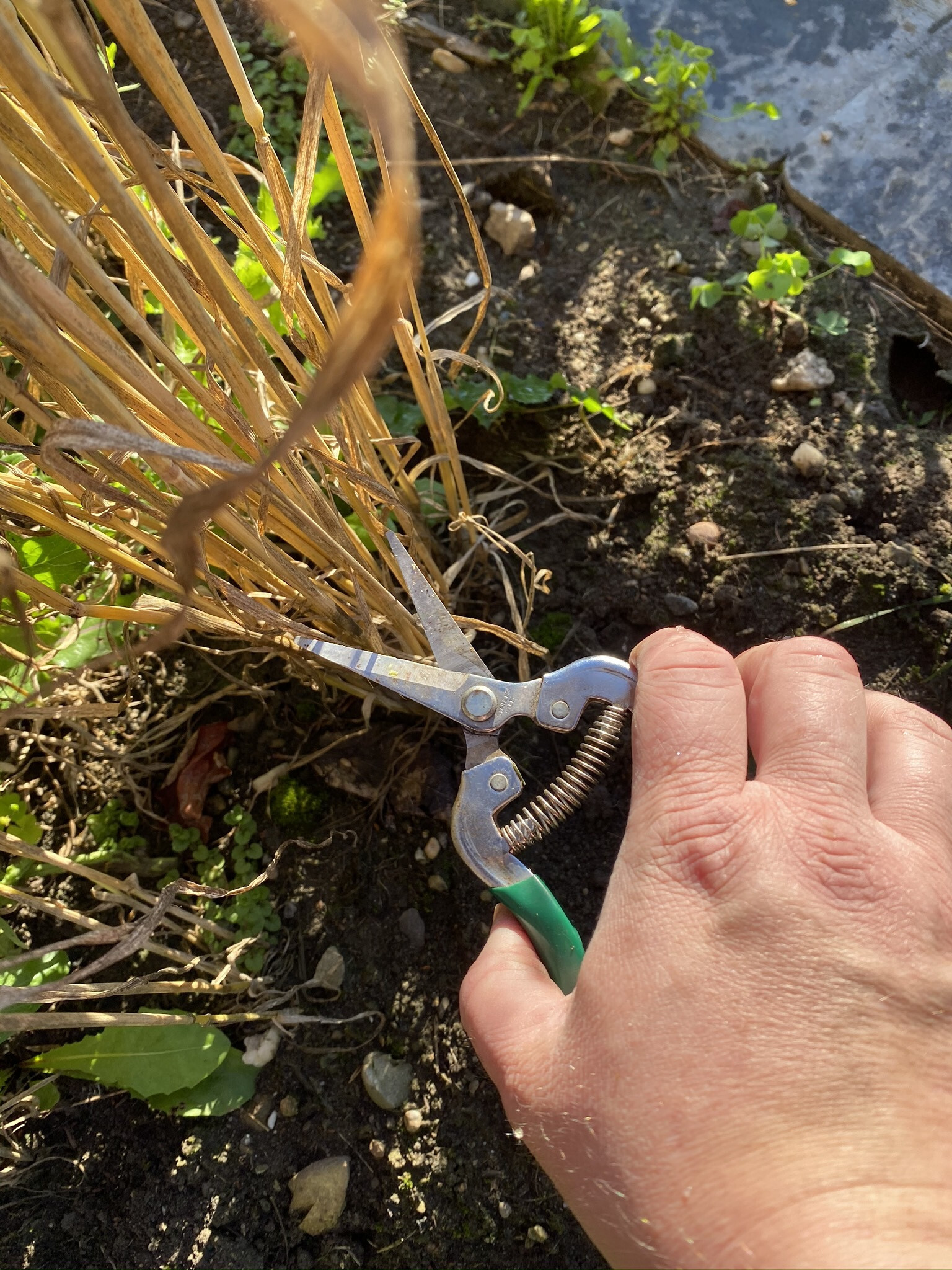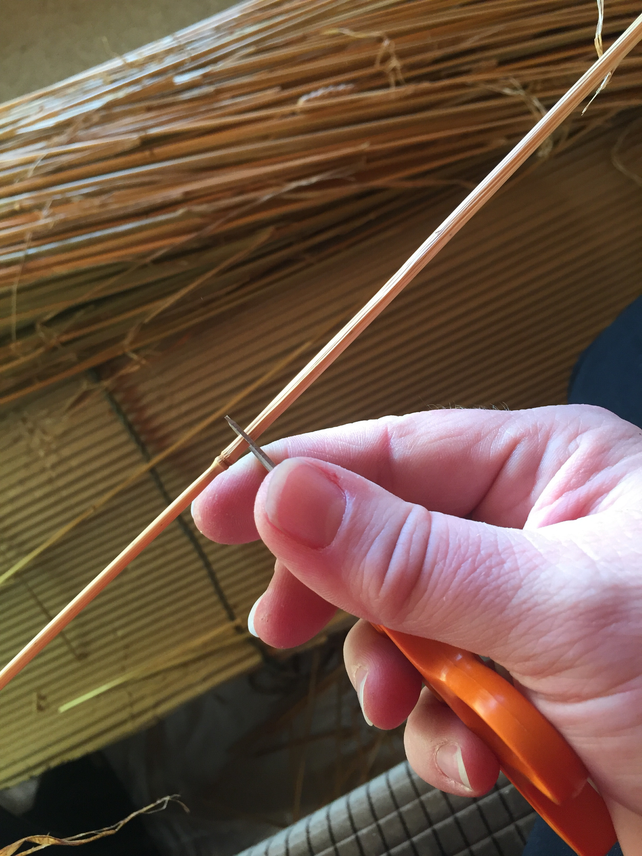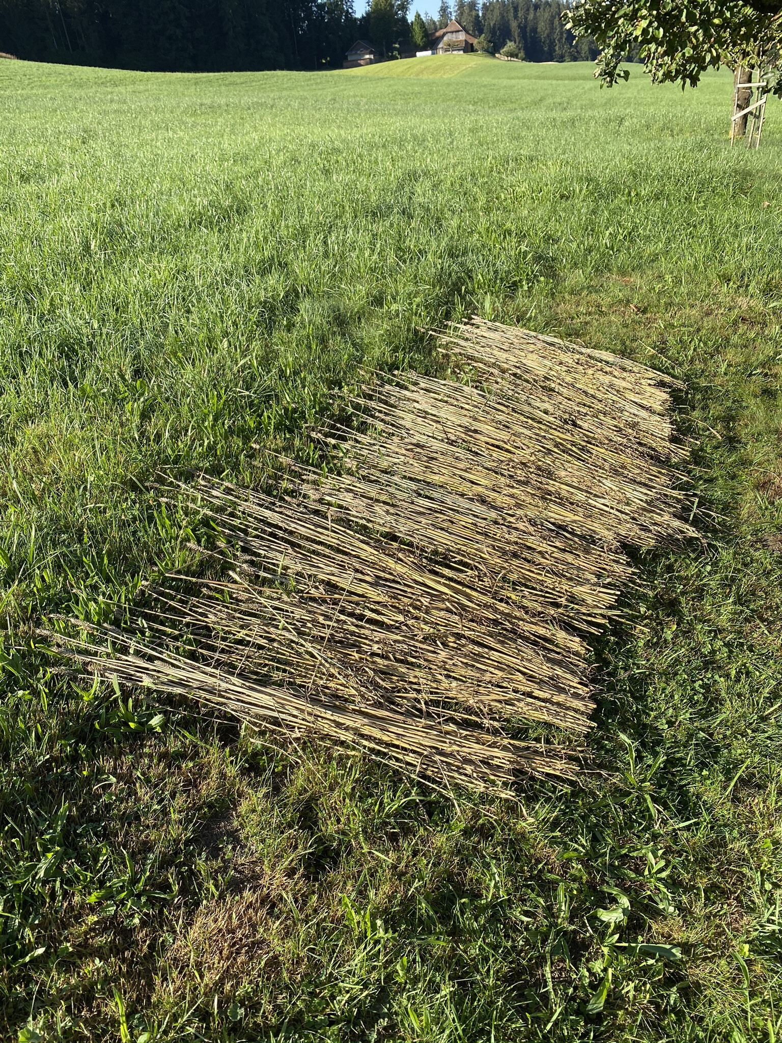 Um die Halme weiter verarbeiten zu können (flechten, knüpfen, drähtlen, etc.) muss das Stroh geputzt werden