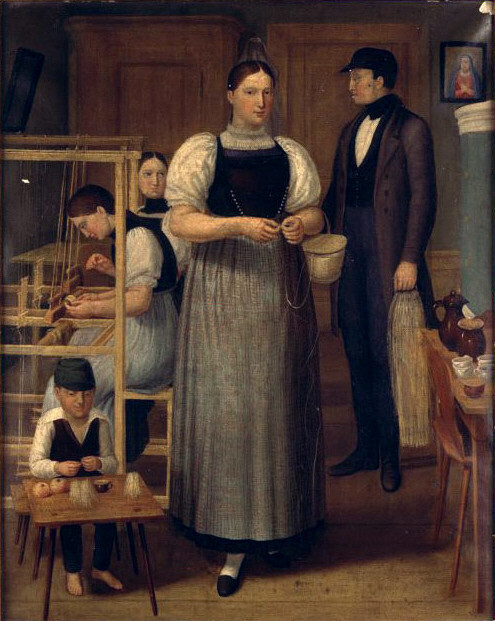 Freiämter Strohflechterfamilie im Aargau, um 1840