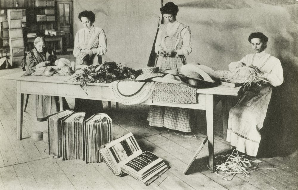 Ganze Familien stellen in Heimarbeit Stroharbeiten her.
